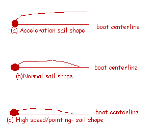 So far I've tried to show the sail setting/steering relationships which can run from one extreme of acceleration to the other, which features super high speed and high pointing. My discussion assumes a moderate sailing breeze of about 5 to 15 mph. But sailing in winds on either side of this range should merely narrow your thinking toward the sail shape that applies.