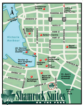 docks downtown Victoria, 3 minute drive from the Shamrock